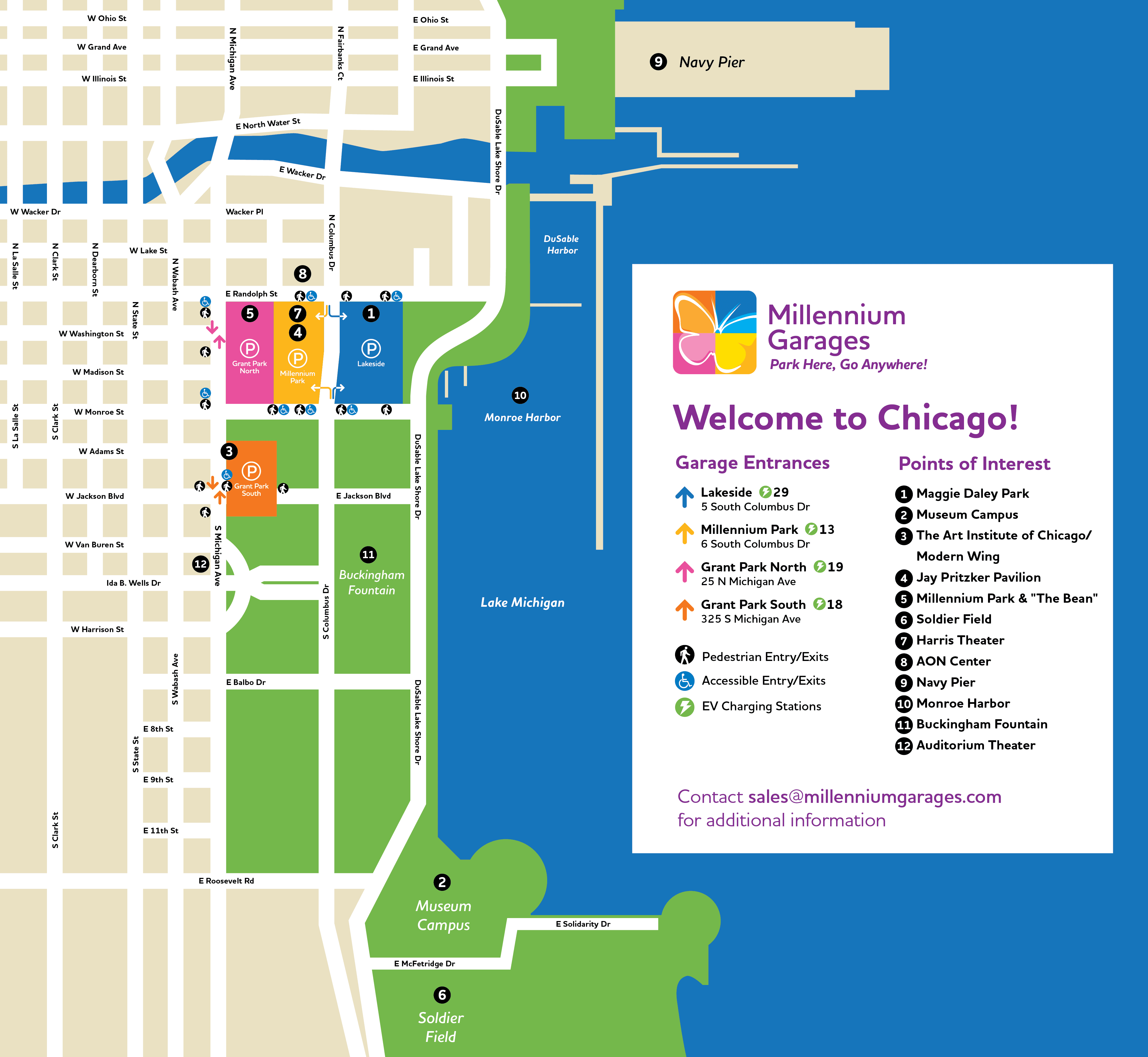 Millennium Lakeside Garages is the most convenient garage if visiting the Lakefront and Navy Pier. Rate valid for up to 12-Hours.
