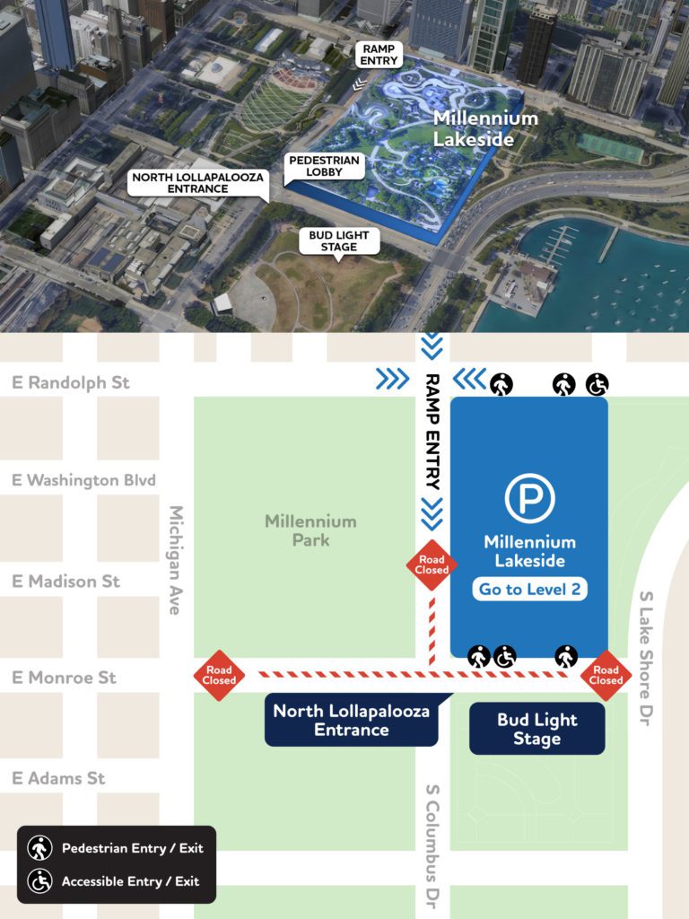 We suggest parking at Millennium Lakeside Garage or Millennium Park Garage (which share the same entrance) to avoid traffic, road closures and easy access to DuSable Lake Shore Drive when arriving and departing the festival. Please check for temporary road closures in advance.